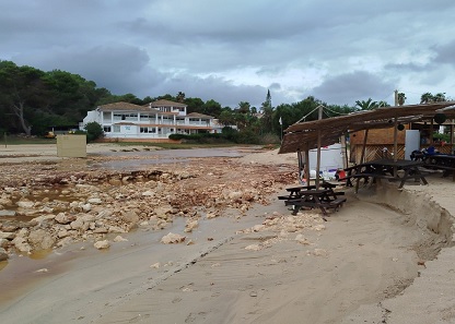Romantica: la playa está operativa, pero el chibiu y el baño público están cerrados a causa de una avería en la tubería provocada por la presión del agua. Se realizan trabajos de reparación con carácter de emergencia. Cala Antena: se está valorando desmontar las sombrillas debido a los daños ocasionados por el temporal. También se ha detectado una roca desplazada sobre el paseo marítimo. Domingos Gran, Tropicana y la Murada: sin incidencias.