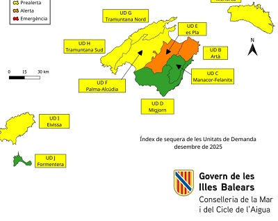 - Las reservas hídricas en las Baleares suben al 49% en diciembre. La mejora del índice sitúa a la unidad de demanda de Artà-Manacor-Felanitx y Migjorn en escenario de normalidad